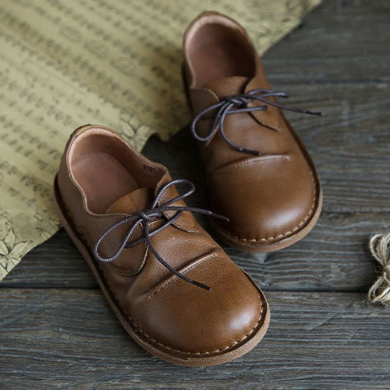 Four Seasons Miękkie Dno Retro Skórzane Płaskie Buty Damskie | Buty Na Prezent