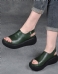 Letnie Skórzane Sandały Na Koturnie Z Odkrytymi Palcami