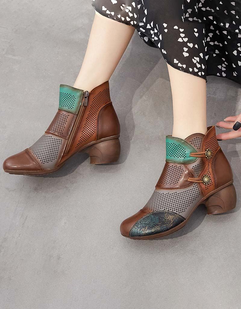 Ręcznie Robione Kolorowe Bloki Hollow Vintage Chunky Booties
