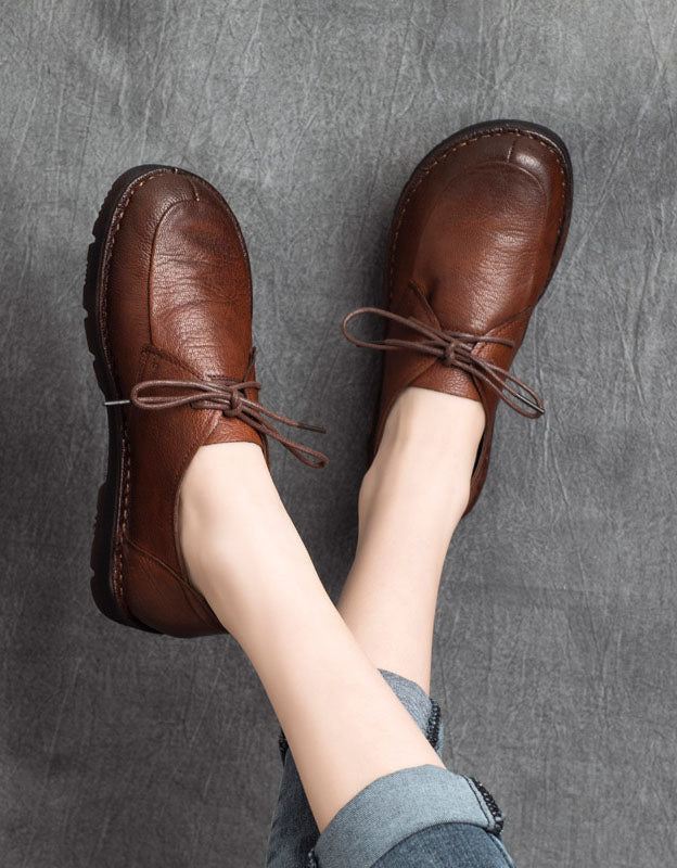 Ręcznie Robione Miękkie Skórzane Sznurowane Płaskie Buty W Stylu Retro