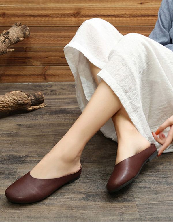 - Płaskie dno damskie wygodne noszenie ręcznie robione kapcie ze skóry bydlęcej