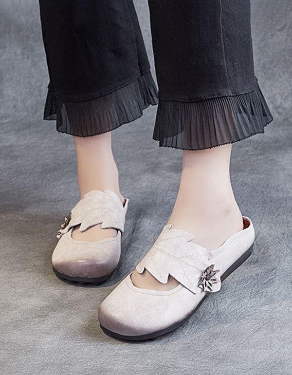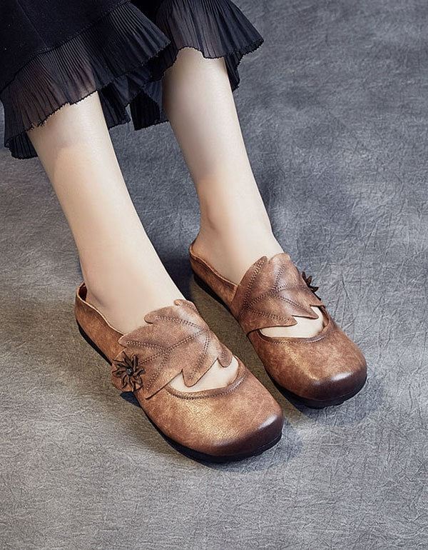 Ręcznie Robione Skórzane Płaskie Kapcie W Stylu Retro