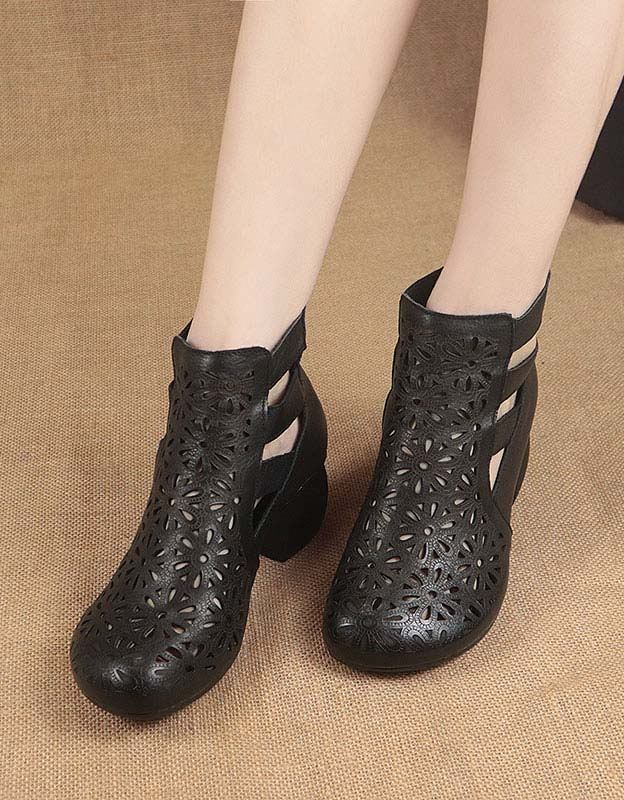 Ręcznie Robione Skórzane Sandały Na Grubym Obcasie W Stylu Retro