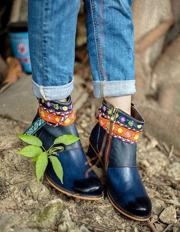 Vintage Modne Buty Do Kostki W Stylu Etnicznym