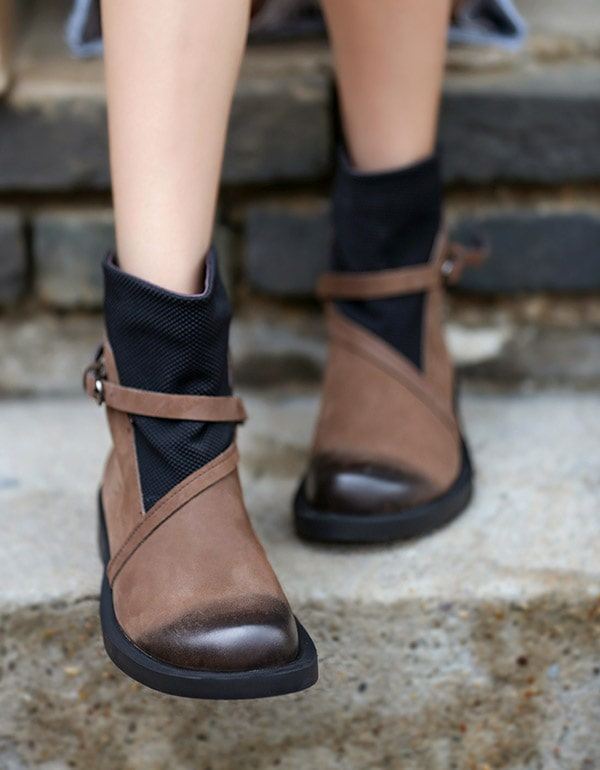 Wiosna Jesień Retro Skórzany Pasek Klamry Buty Chelsea