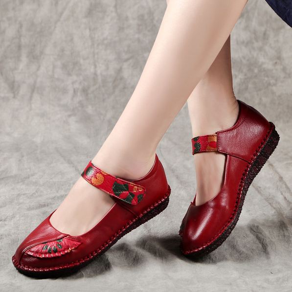 Wiosna Kobiety Etniczne Skórzane Miękkie Dno Płaskie Buty Dopasowania Kolorów