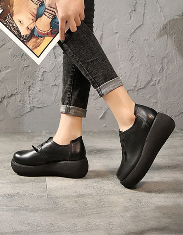 Wiosna Lato Okrągłe Buty Damskie Skórzane Platformy