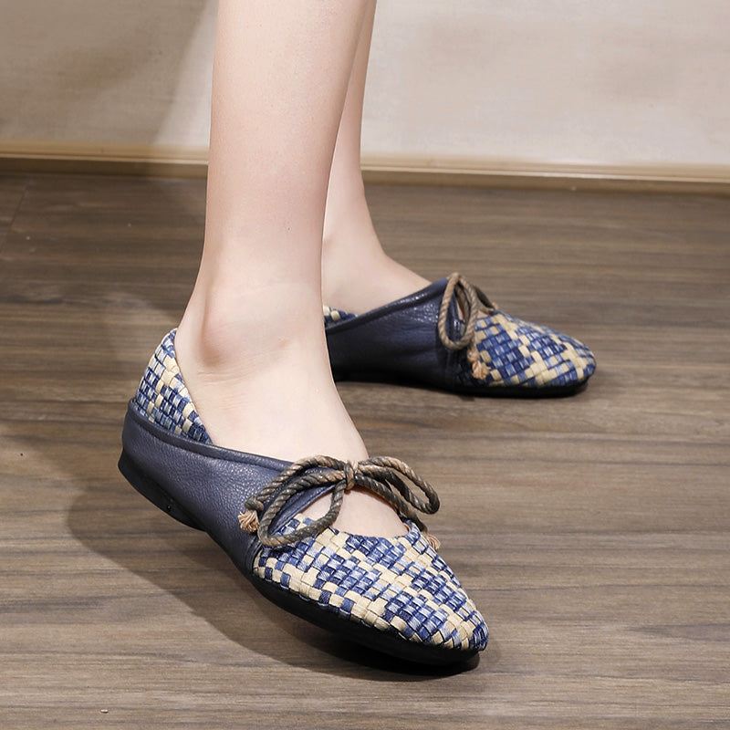 Wiosna Vintage Skórzane Tkane Kobiety Mieszkania