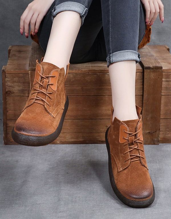 Zamsz Wiosna Jesień Wygodne Krótkie Botki
